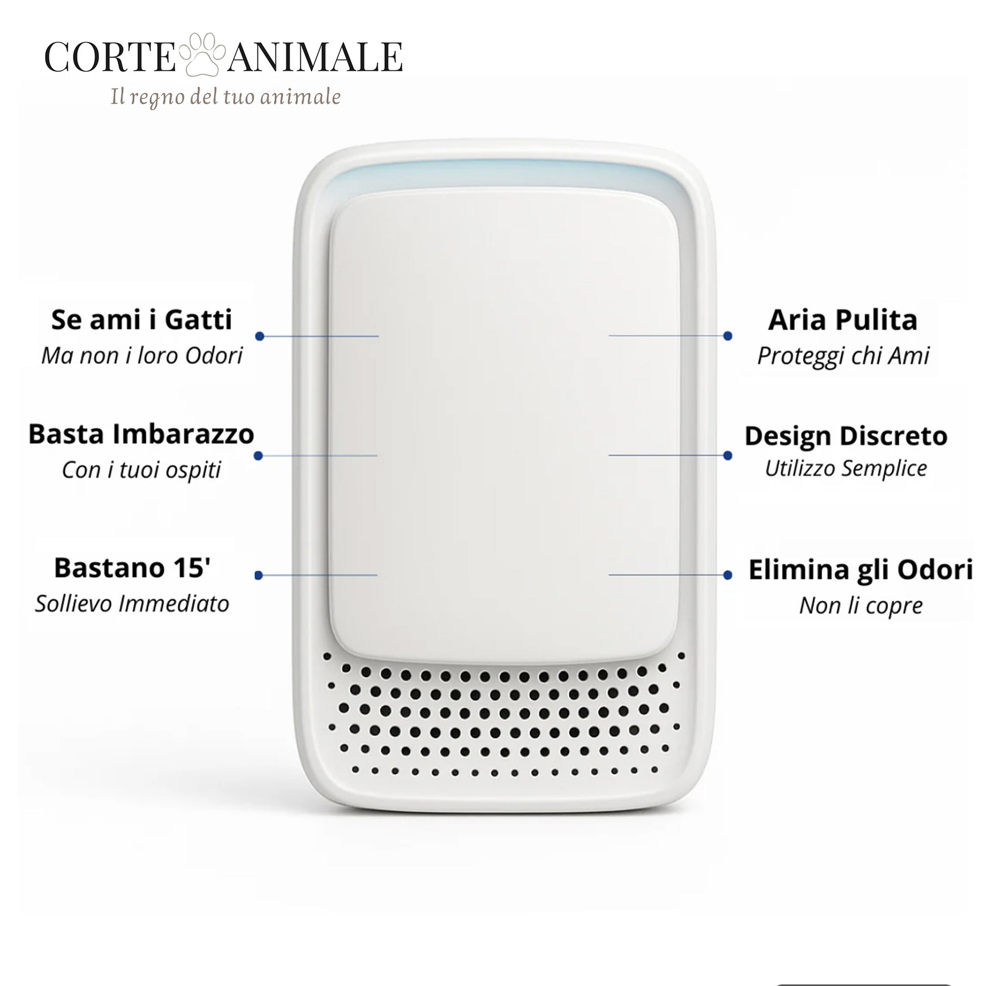 Agisce rapidamente contro odori di animali, lettiere, tessuti e ambienti, senza coprirli ma eliminandoli davvero.